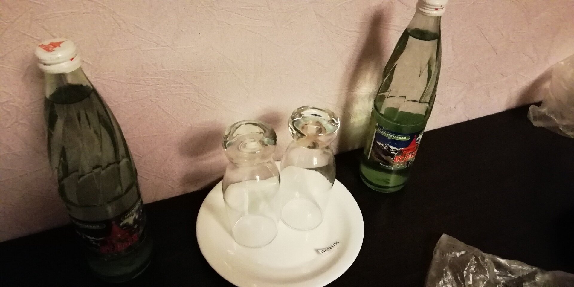 Вода в номере с символикой мотеля "Отдых". Фото автора