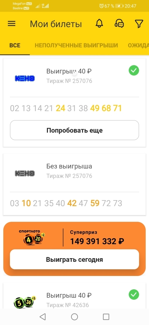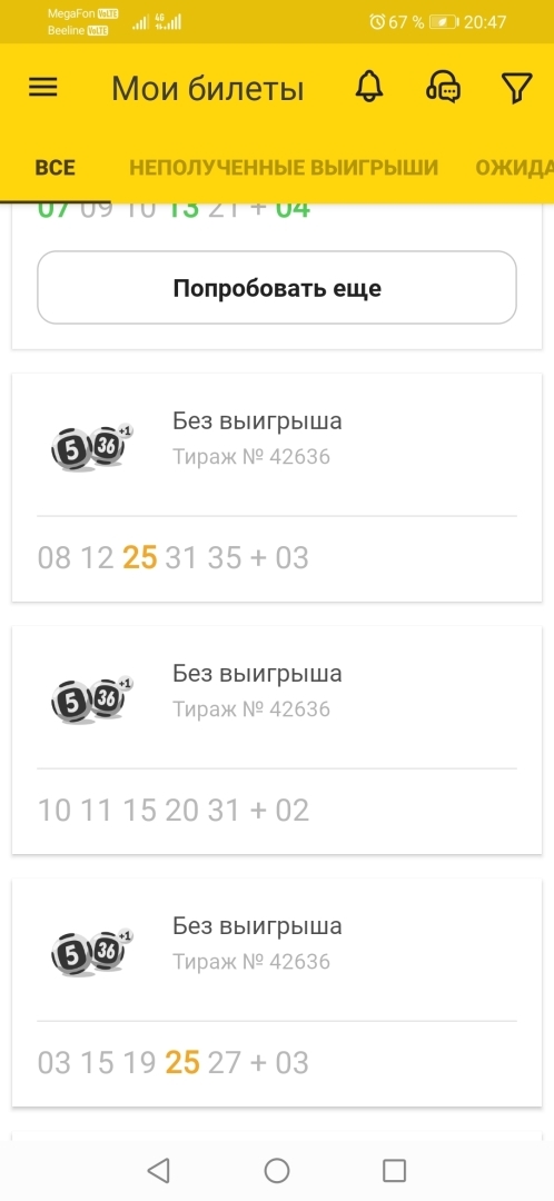 И вот опять, из 8 билетов..))) =но надежда умирает последней...