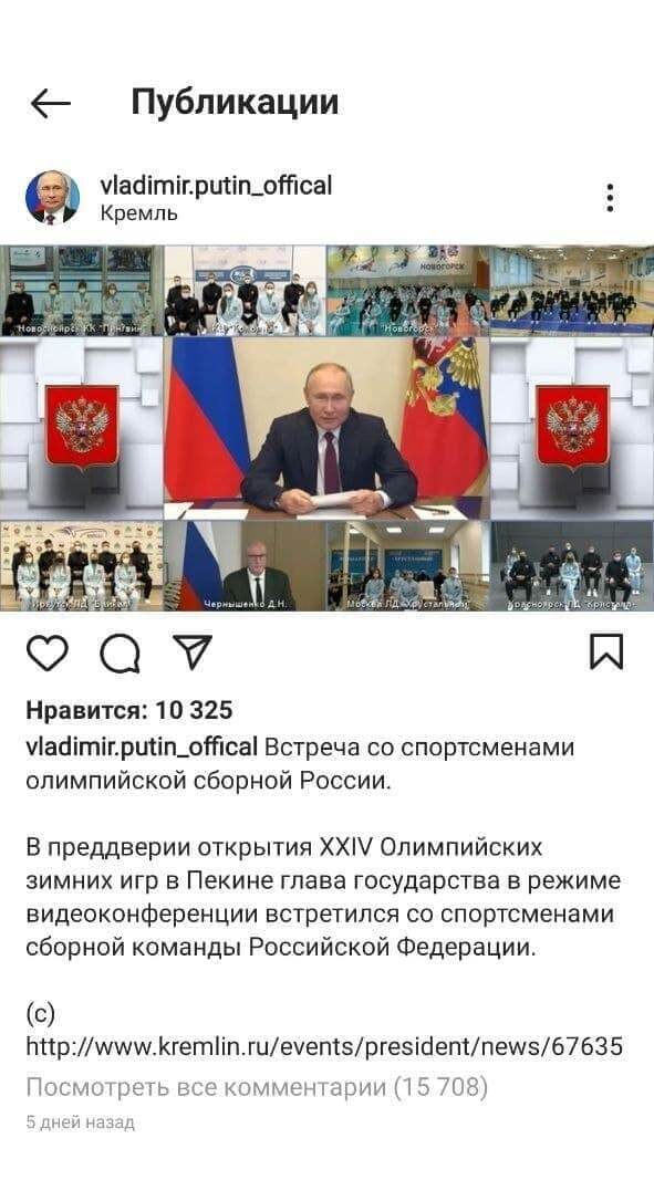 Иностранные пользователи соцсетей обрушились комментариями на "страницу Путина" в Instagram****