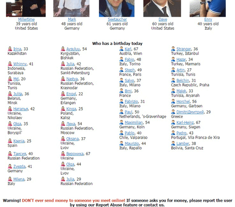 Некоторые сайты знакомств специально предупреждают пользователей не отправлять деньги интернет-знакомым. За просьбу выслать денег можно получить жалобу и быть удаленным с сайта.
