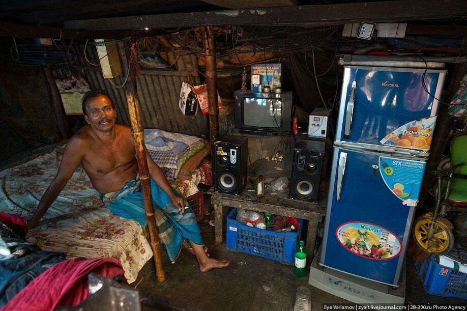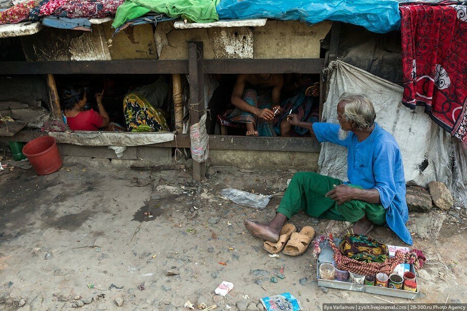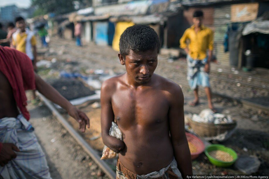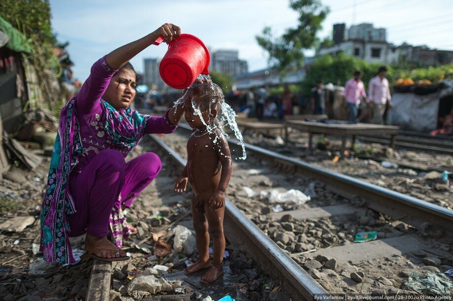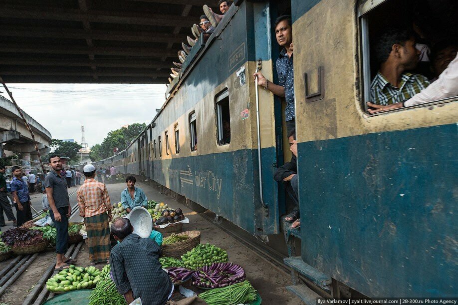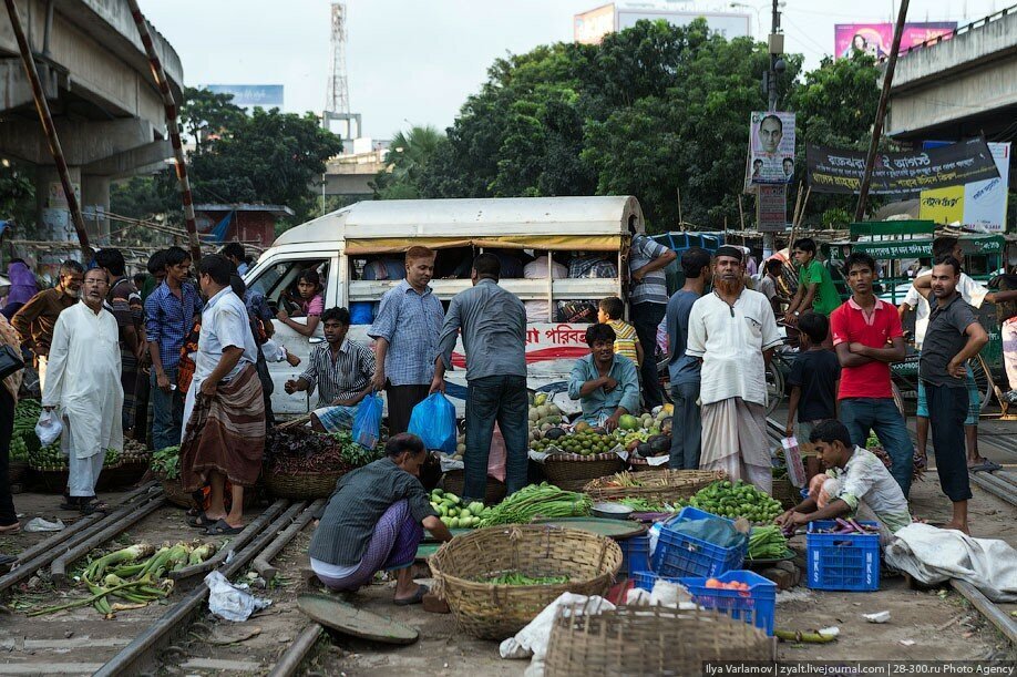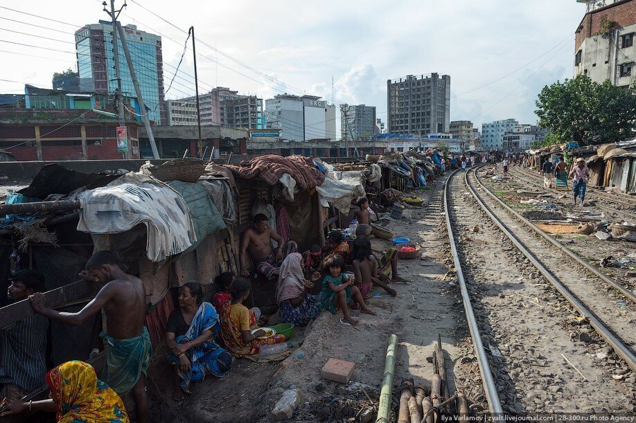 В Бангладеше есть чудесные трущобы вдоль железнодорожных путей. Именно там протекает настоящая жизнь! В городе свободного места давно нет, единственная доступная земля есть вдоль железной дороги. Здесь и строят свои маленькие домики тысячи бедняков. Вся жизнь здесь проходит на рельсах. На них играют дети, готовят еду, чистят одежду, продают что-то. Между путями устраивают огороды. Порой кажется, что пути эти давно заброшены, но тут раздается гудок и люди мгновенно разбегаются, освобождая дорогу поезду.