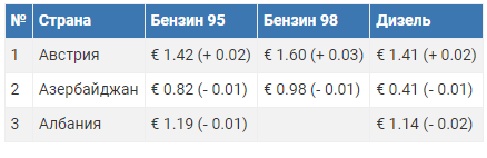 Слабее всего цены на дизельное топливо выросли в России (на 11,3%), Белоруссии (на 16,7%), Венгрии (на 20,3%), Португалии и Италии (на 20,6%).