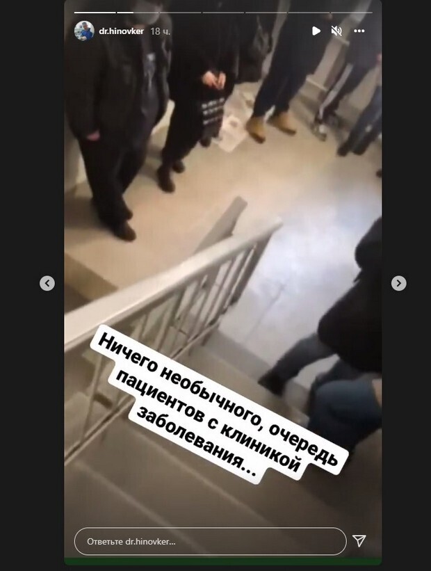 Видео, на котором запечатлен масштаб очередей, опубликовал врач-реаниматолог Владимир Хинковер. Он указал, что его прислала ему племянница, которая пошла ко врачу.