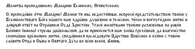 Молитва преподобному Макарию Великому, Египетскому.