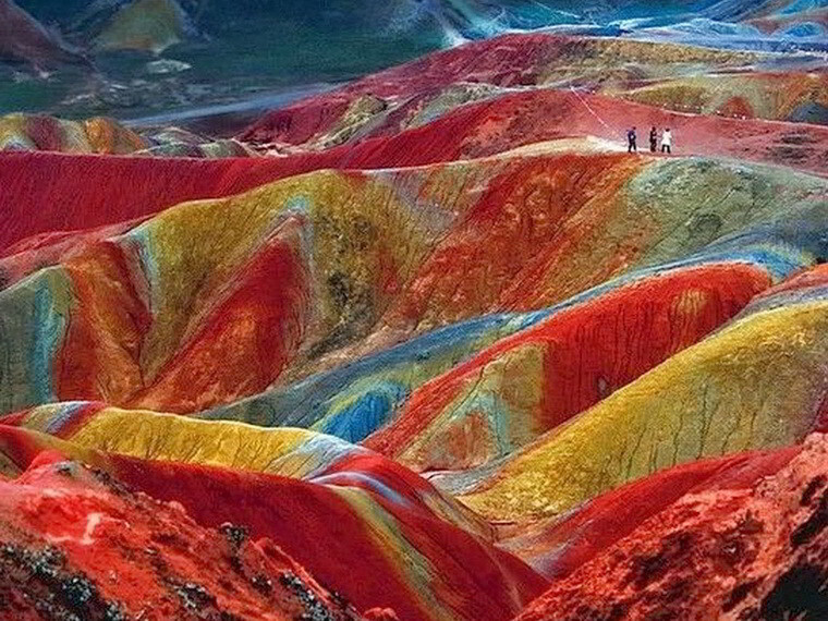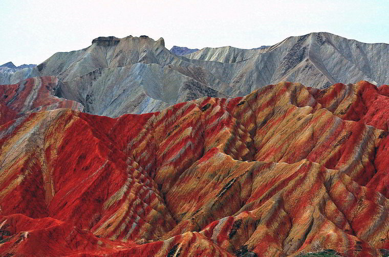 Цветные скалы Чжанъе Данксиа в Китае.
