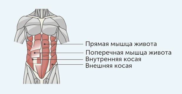 В абдоминальной области можно выделить 4 основные мышечные группы: