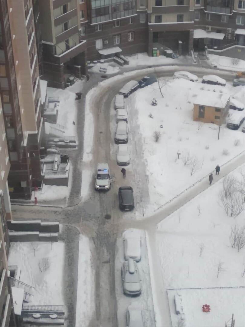 Школьница шла вместе с мамой во дворе Комендантского проспекта, когда на неё упал мужчина. Он погиб на месте.