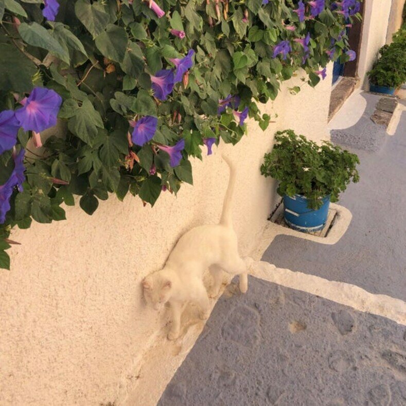Этот снимок из Греции. Кажется, если отойти на несколько метров от этой стены, то кошку можно просто не заметить.