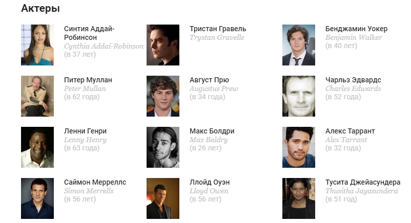 Актеры: Синтия Аддай-Робинсон, Тристан Гравель, Питер Муллан, Бенджамин Уокер, Август Прю, Чарльз Эдвардс, Ленни Генри