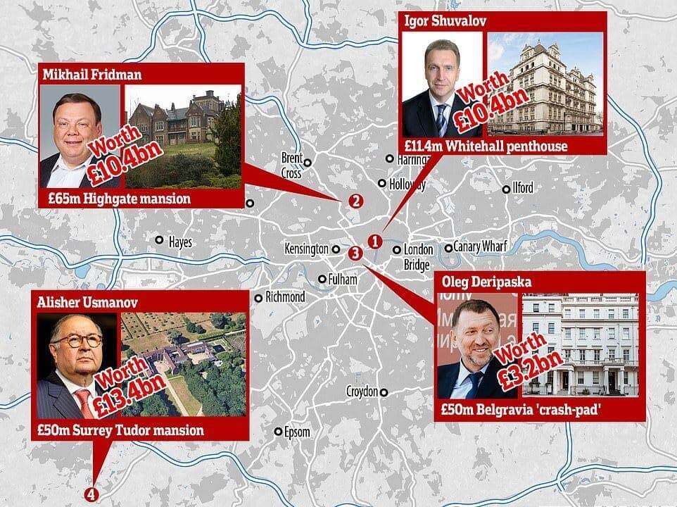 The Daily Mail опубликовала «карту» с недвижимостью российских олигархов в Великобритании, которым грозит заморозка активов