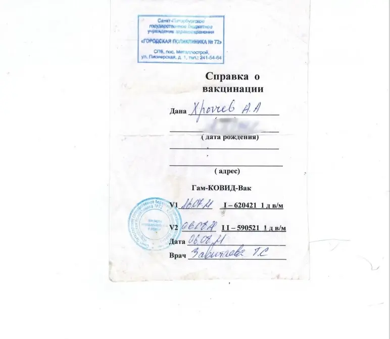 В справке о вакцинации от коронавируса говорится, что он получил обе дозы «Спутника V» в городской поликлинике № 72 — 16 июля и 6 августа 2021 года. Достаточно давно, чтобы сформировался иммунитет, и не полгода назад, чтобы стоял вопрос о ревакцинации. Но в октябре он всё-таки заразился ковидом, и инфекция начала развиваться стремительно.