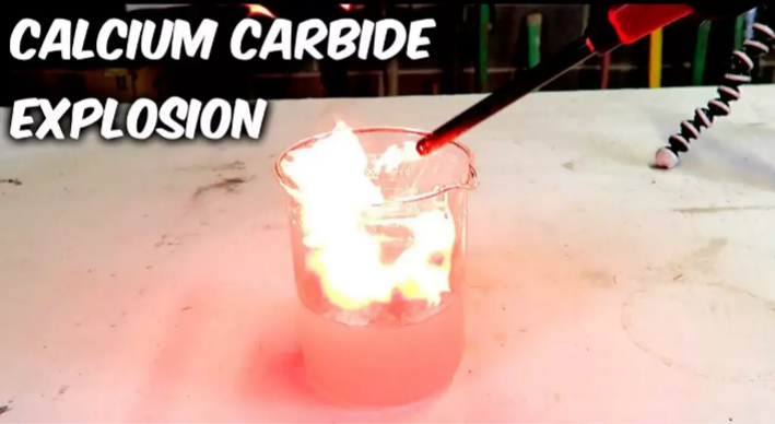 После высыпания карбида в яму начинается химическая реакция, при которой выделяется огнеопасный газ ацетилен.