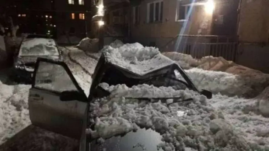 По словам горожан, инцидент произошел по дворе домов №№ 124-126 на проспекте 50 лет Октября. Снег рухнул с крыши пятиэтажки на стоявшую во дворе "девятку". Автомобиль сильно повредило. По словам местных жителей, их управляющая компания совсем не выполняет свои обязанности. Снег с крыши дома никто не чистит.
