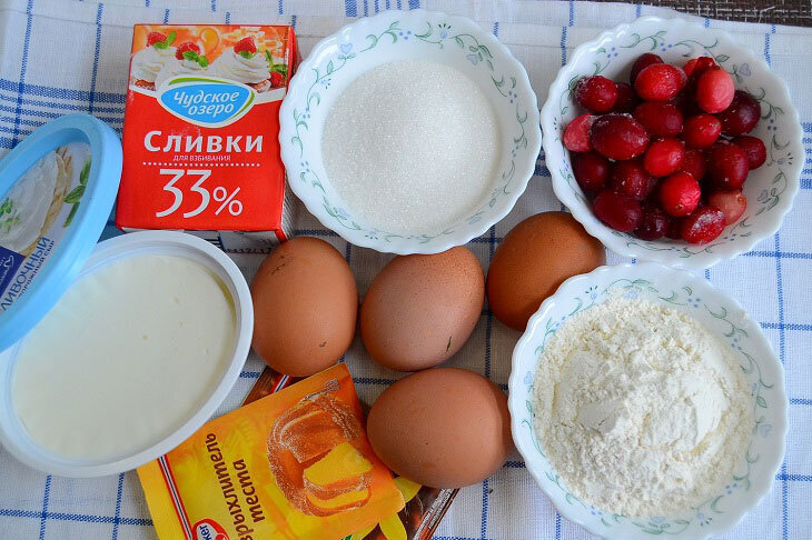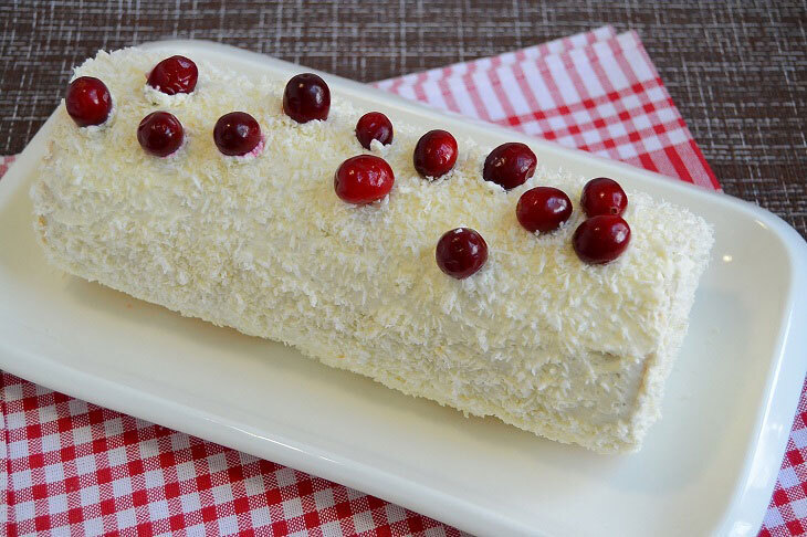 Бисквитный рулет «Ягоды в снегу» с нежным сливочным кремом и ароматными, с ягодками клюквы внутри, украсит не только семейное, но и праздничное чаепитие. Приготовить такой десерт сможет даже не очень опытная хозяйка тем более, что продукты для него понадобятся самые доступные и недорогие. Собираем необходимые ингредиенты для приготовления десерта.
