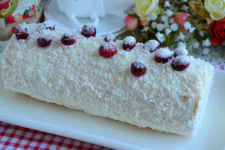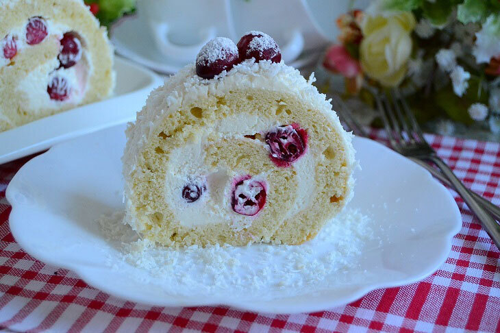 Бисквитный рулет «Ягоды в снегу»: нежнейший десерт