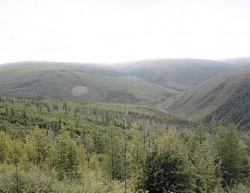 До организации экспедиции на склонах и в самом ущелье росли лиственницы. Чахлые, кривоватые, но все же они были. С приходом исследователей их пришлось спилить, поскольку самым простым способом определения возраста кратера оказалось исследование кольцевых спилов.
