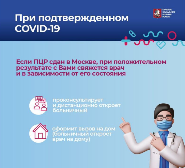 Если пациент сдал ПЦР-тест в Москве, его результат автоматически попадает в единую лабораторную систему. В случае положительного результата с таким пациентом инициативно связывается врач и в зависимости от его состояния проводит аудиоконсультацию и дистанционно открывает больничный.