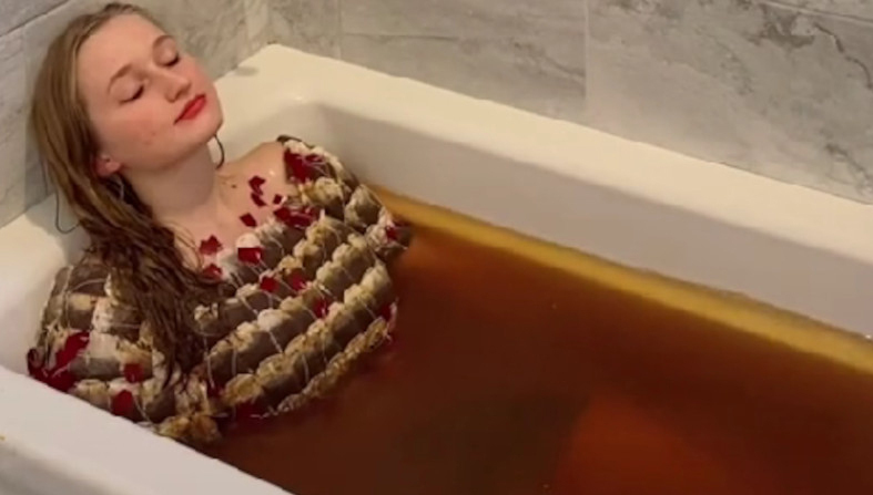 Дизайнер из США сшила себе наряд из чайных пакетиков, а потом заварила себя в ванной. Вот это я понимаю креатив. В общем, однажды Джесс Ламворт пила чай и заметила, что пакетик напоминает футболку. Тогда она сшила себе футболку из чайных пакетиков, надела ее, улеглась в горячую ванну и добавила немного молока и сахара. Видео процесса набрало 10 миллионов просмотров. Кстати, девица уже создавала пиджак из картошки фри и бельгийских вафлей, юбку из карандашей и многое другое.
