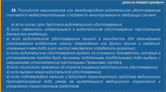 В каких случаях российское национальное водительское удостоверение будет считаться считается недействительным и подлежать аннуляции