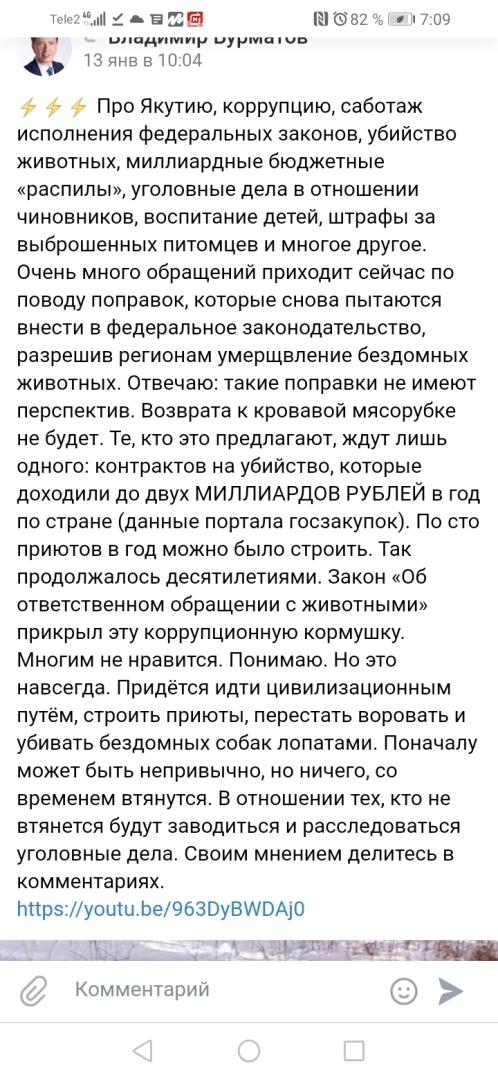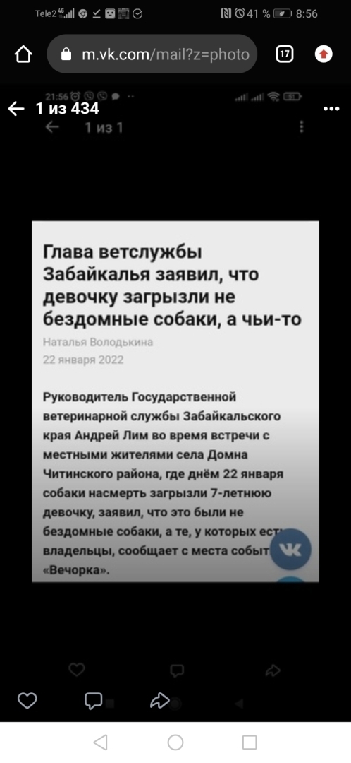 Сейчас пошел какой-то бум на освещение случаев с нападением бездомных собак. Прямо собаки сговорились и начали нападать на людей! Выглядит очень неправдоподобно. Как будто кто-то решил таким образом убрать животных. Это провокация. На подобные случаи люди реагируют злостью, агрессией, в корень проблемы никто не смотрит: как эти собаки оказались на улице, почему они там появились. Их там быть не должно, но не с помощью отстрела. Власти просто руками людей решают проблему. Они дали команду — и люди пошли делать работу, которую должны делать чиновники, причем делать гуманно и по законодательству