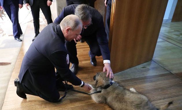В 2019 году президент Сербии Вучич подарил Владимиру Владимировичу щенка шарпланинской овчарки. Четырехмесячного щенка назвали Пашей. Эта порода последнее время пользуется популярностью из-за высокой выносливости и уравновешенного характера.