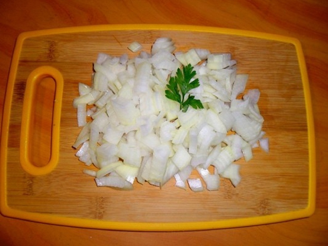 и мелко порезанную луковицу.