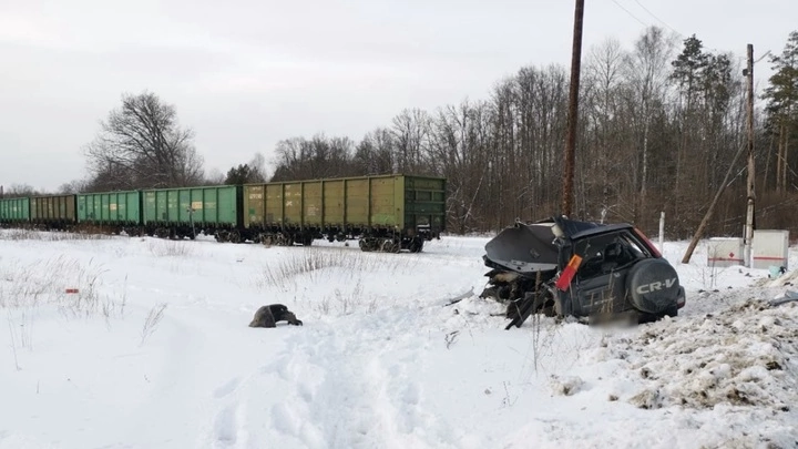 Локомотив снес выехавшую на переезд машину в Суземском районе Брянской области. Водитель Honda CR-V скончался на месте, его пассажира доставили в больницу.