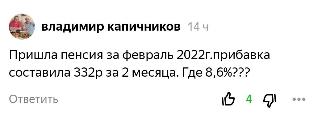 А вот военные пенсионеры реально возмущены и без стеснения высказывают недовольство в сети по поводу отсутствия прибавки в размере 8,6%. Они отмечают, что пенсия увеличена на маленькую сумму, которая является ни чем иным как недоплаченной январским изменением размера понижающего коэффициента (+0,32%).пенсия безработным