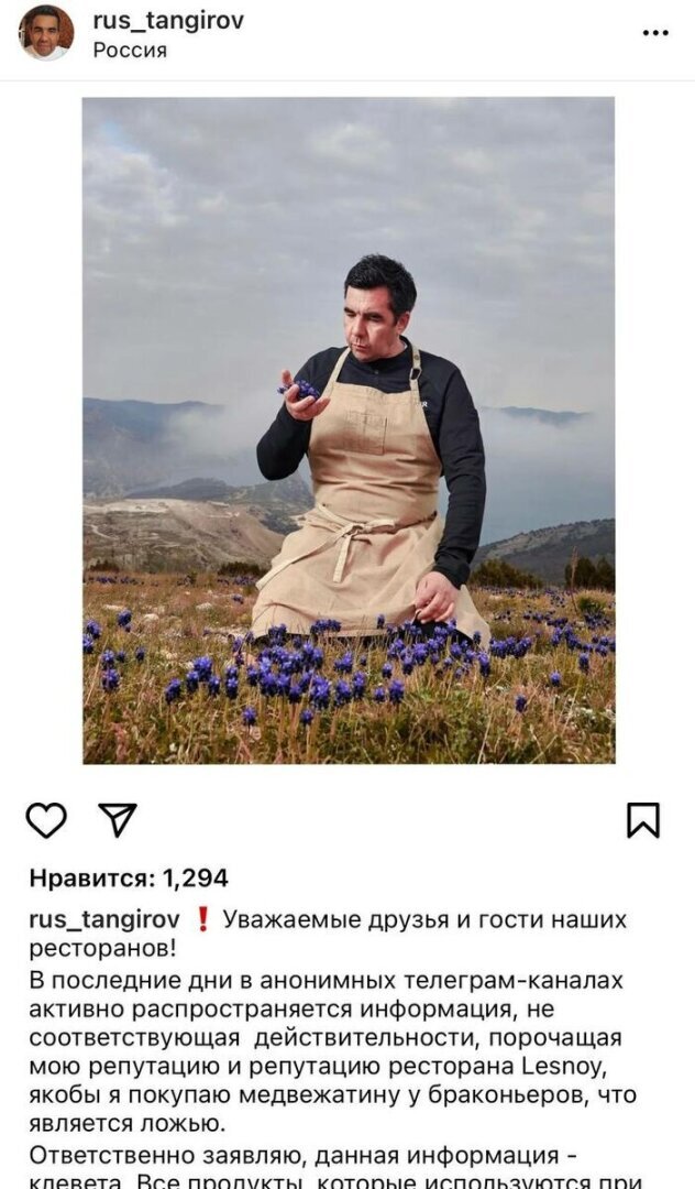 В карусели пост из блога шеф-повара ресторана "LESNOY" Рустама Тангирова. Он совсем не хочет признавать свою "гениальность", при помощи которой создал особенное изысканное меню из "экзотики", которую можно отведать в центре столицы.