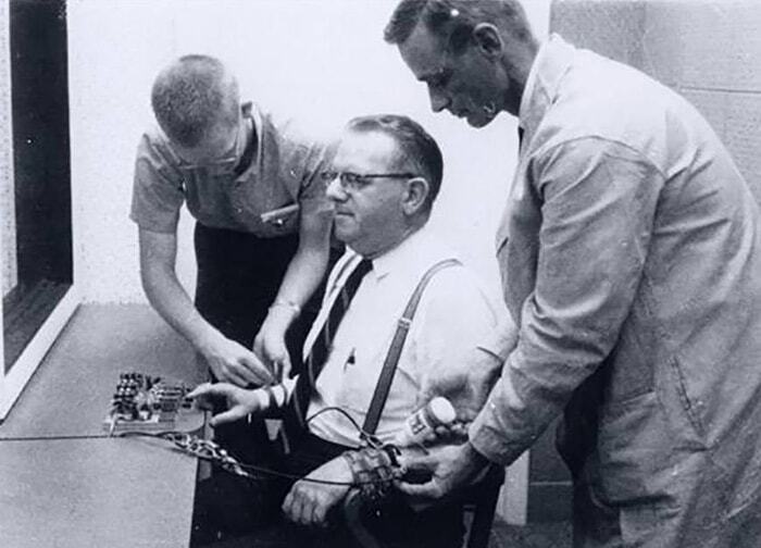 Этот эксперимент провел в 1961 году психолог Стэнли Мильгрэм. С помощью него он хотел выяснить, могут ли люди действовать согласно мнению авторитетных фигур, даже если действия,которые им было поручено выполнять, были явно вредны для других.