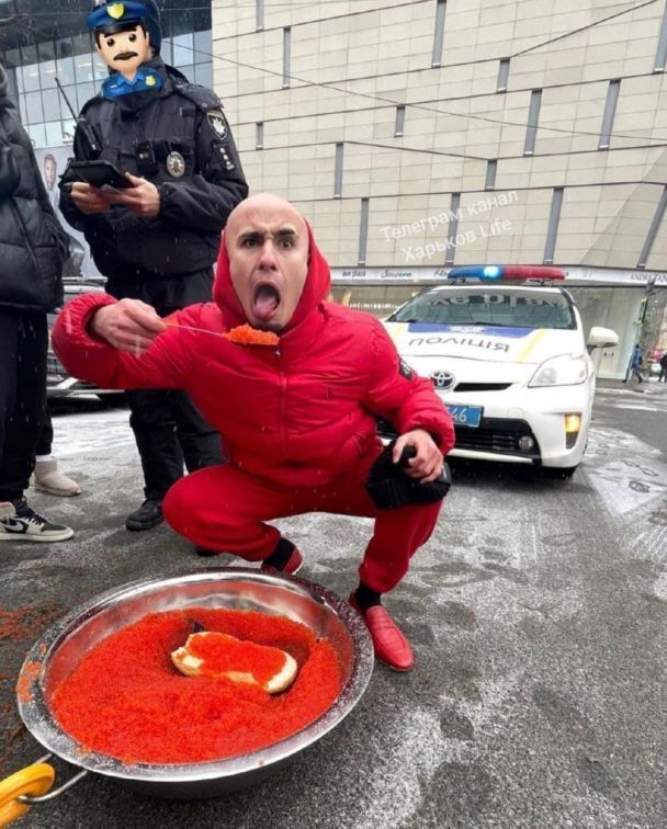 "Харьковский блогер решил хайпануть. Парень голышом сел в таз с красной икрой и проехался по городу. Его заметили на Сумской", — рассказали очевидцы.