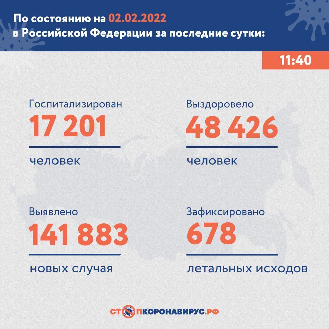 На сегодня, 03.02.2022 в России всего зарегистрировано: