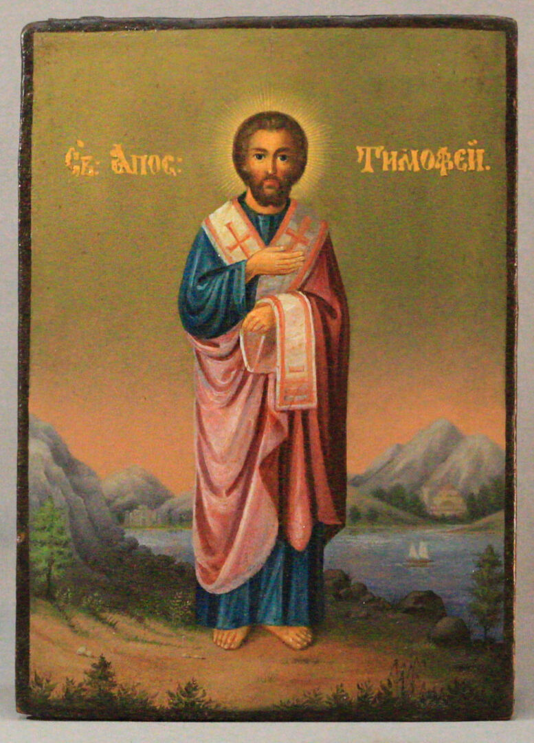 Тимофей родом из города Листры (Малая Азия) был любимым учеником апостола Павла, спутником и соратником в проповедях. Павел назначил его епископом церкви в Ефесе, которой он управлял 15 лет.