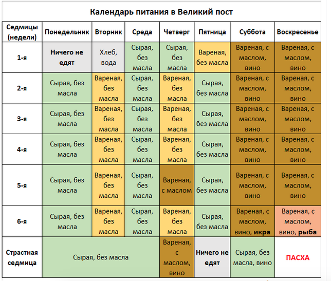 Великий пост 2022 года подробный календарь питания на каждый день - Дата начала Великого поста в 2022 году и значение каждой его недели