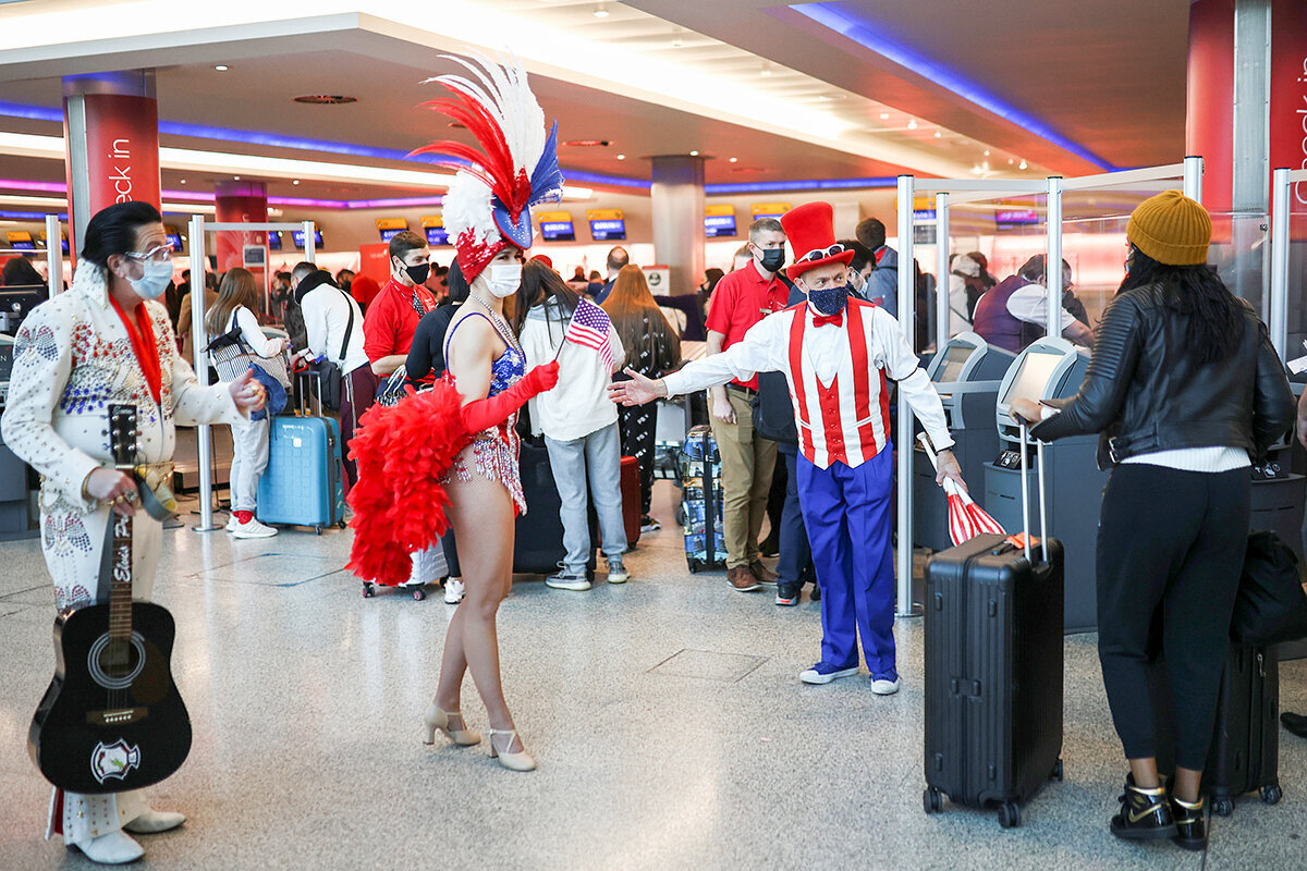 Артисты развлекают путешественников в аэропорту Хитроу, Великобритания Фото: Henry Nicholls / Reuters