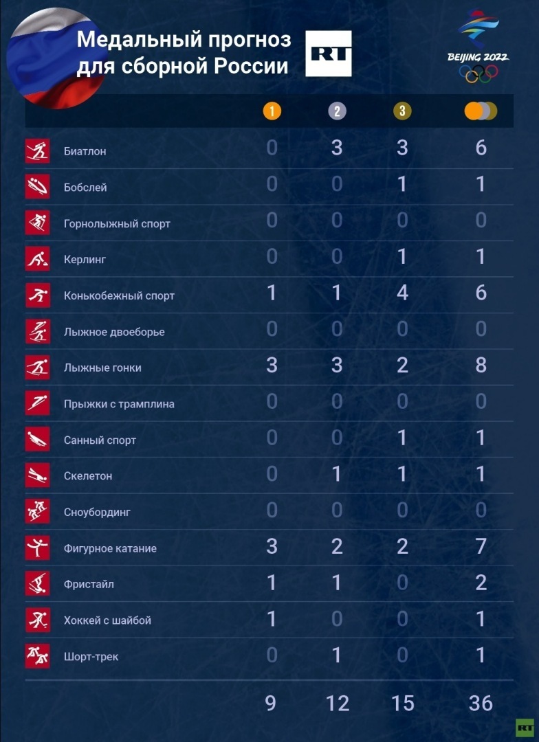 Медальный прогноз сборной России на Олимпиаду в Пекине 2022, таблица