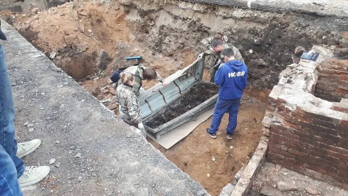 Во время прокладки труб в Самаре обнаружили склеп с необычным гробом