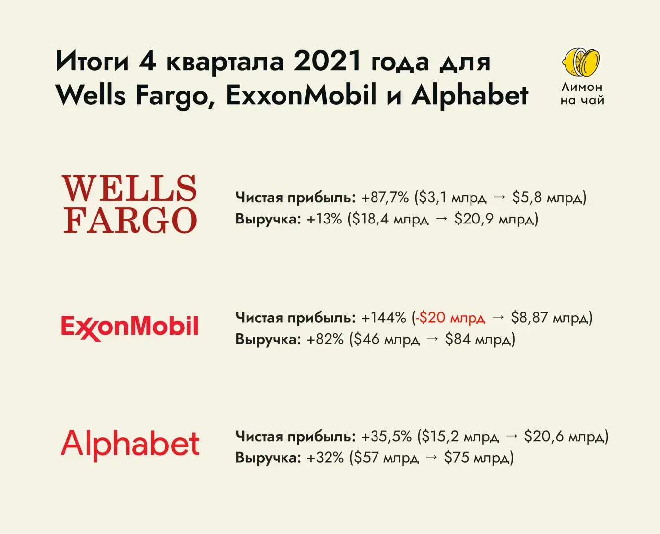 2️⃣ ExxonMobil. Крупнейшая в мире нефтяная компания постепенно выходит из кризиса. Если в 2020 году она обвалилась вплоть до убытков, то уже в 2021 начала наращивать показатели. Этому способствовало подорожание нефти с $30 до $70.