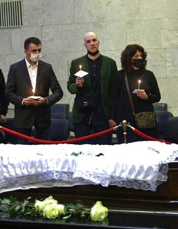 Гроб с Леонидом Куравлевым выносили из ритуального зала в катафалк без аплодисментов. Аплодировать артисту было некому. Отсутствие людей может быть связано с коронавирусным протоколом и закрытым форматом церемонии.