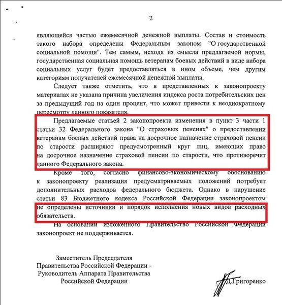 3. Ну и по классике жанра - Правительство "не поддерживает законопроект", так как им не указали источник финансирования. Странно, расчеты все приведены в финансово-экономическом обосновании, а источники из которых финансируется выплата пенсий и обеспечния жильем, известны даже студенту-юристу первокурснику.