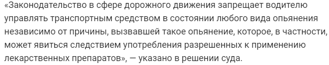 Верховный суд отмечает, что лекарства, в которых содержатся недопустимые для вождения автомобиля вещества, должны упоминаться в инструкции по применению лекарственного средства. А если по простому посоветовал внимательно читать наставления по применению лекарств.