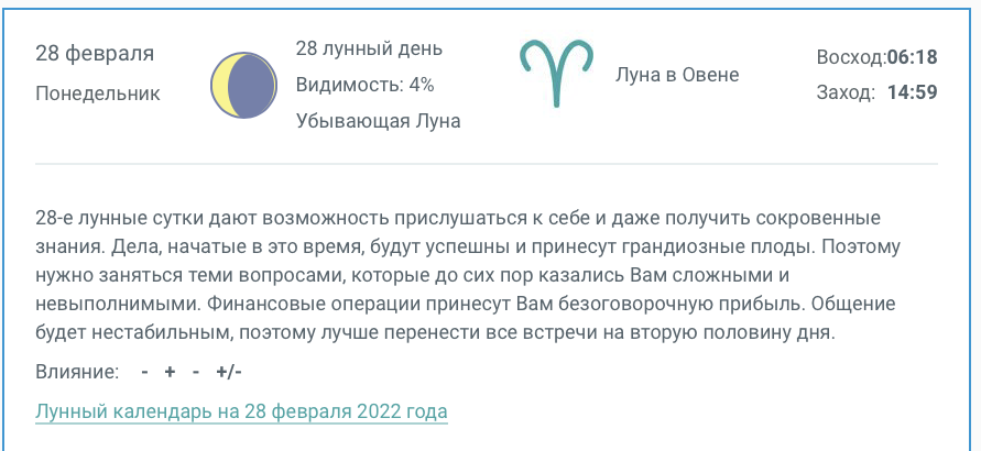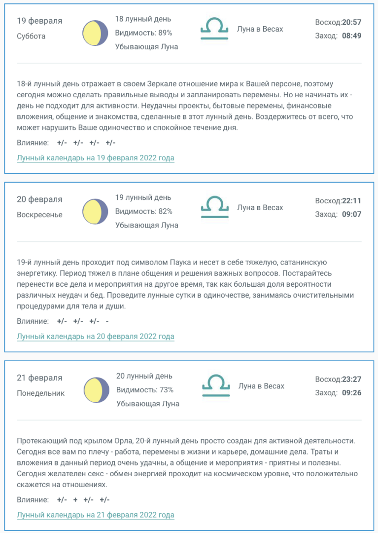 Лунный календарь на Февраль 2022 года. Описание дня и рекомендации астрологов. Что можно делать, а от чего нельзя