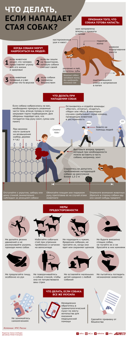 Что делать, если нападает стая собак, смотрите в инфографике АиФ.ru