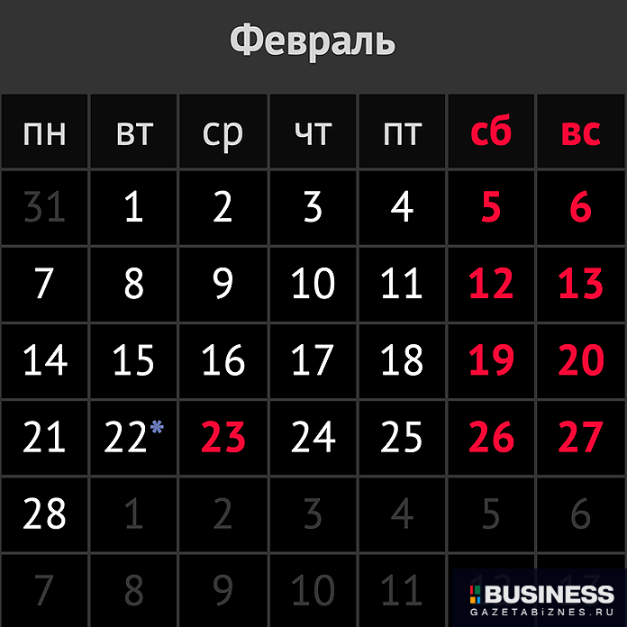 Выходные в феврале 2022 года