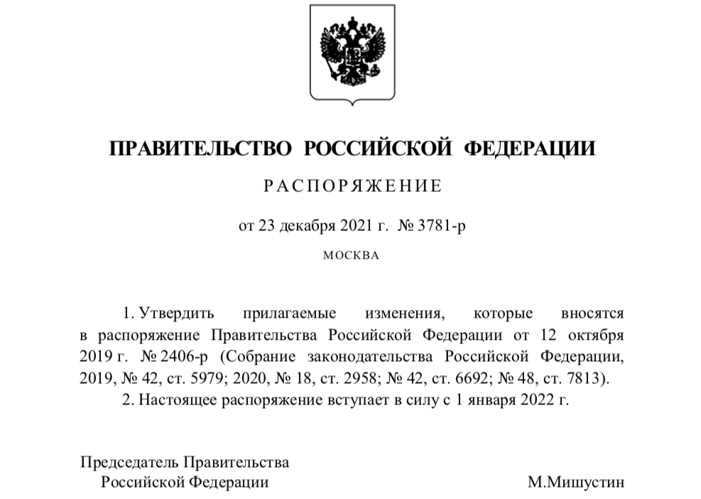 Утвержден новый перечень жизненно необходимых и важнейших лекарственных препаратов на 2022 год в соответствии с Распоряжением Правительства от 23 декабря 2021 года №3781-р.