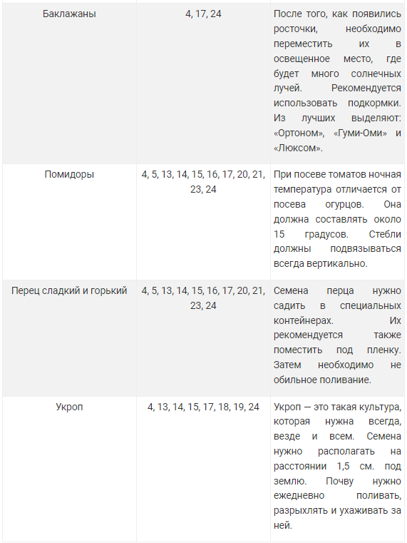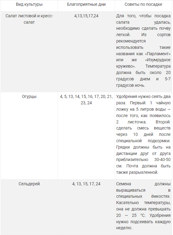 Чтобы не упустить момент для благоприятной посадки необходимо следовать таблице удачных посадочных дней.