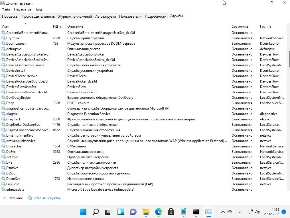 Для отключения лишних служб воспользуйся вкладкой «Службы» диспетчера задач Windows.