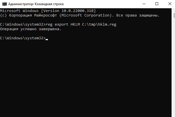 reg export HKLM С:\hklm.reg