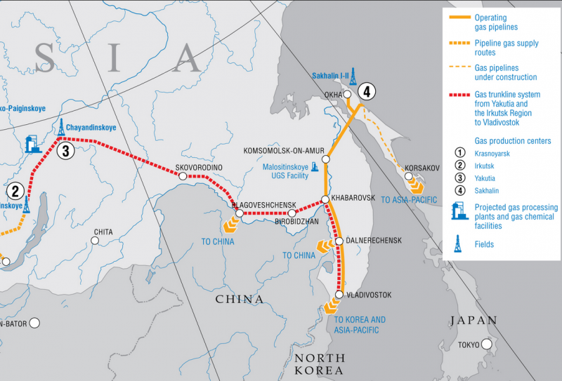 И мы видим, что первый шаг в данном направлении сделан. В настоящий момент на Дальнем Востоке проходит газопровод Сахалин - Хабаровск - Владивосток.