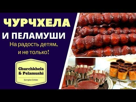 Чурчхела (грузинский: ჩურჩხელა ) - традиционная грузинская кухня-конфеты в форме свечи. Основными ингредиентами являются виноградное сусло, орехи и мука. Миндаль, грецкие орехи, фундук, шоколад, а иногда и изюм нанизывают на нитку, окунают в сгущенный виноградный сок или фруктовые соки и сушат в виде колбаски. В традиционной технологии чурчхела в Кахетии была включена в список нематериального культурного наследия Грузии в 2015 году. Пеламуши (груз. ფელამუში) или татара — блюдо грузинской кухни, густой твёрдый охлаждённый кисель из виноградного сока и муки. Обычно пеламуши подаются к столу с очищенными орехами или козинаками.